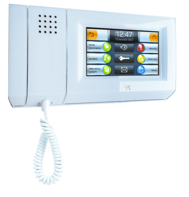 Nowy odbiornik wideofonowy z kolorowym monitorem dotykowym LCD 4,3 cala, który będzie jednocześnie spełniał funkcję terminalu automatyki inteligentnego domu HOASIS Bpt i konsoli systemu alarmowego Brahms Bpt. Mitho jest kompatybilny z systemem X1, X2 i 300 oraz posiada interfejs do magistrali LonWorks systemu Hoasis i Brahms.